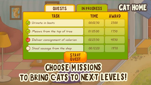 Start to take over the world with a help of cute kittens! The whole house of cats and kitties, who perform tasks! In sweet game you have more than one cat for telephone, you have the whole collection of furry pets! Send a kitty on a mission - to tear someone's sofa, and watch, how cat destroy neighbor house! To stole sausage or to pee in slippers - cutie kitties and cats love to do dirty tricks! Earn rewards for the tasks to make cat evolution possible! Level up intellect, friskiness and loveliness of kittens! Cats bring profit now! Take care of kitties is easy - you only need to feed the cats fish! Furry pets - cats and kittens - help to take over the world! The game, where all cats, kitties and kittens are sweet and cute like nyan cat! Nya!