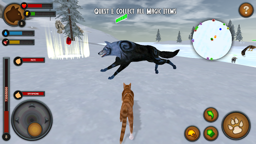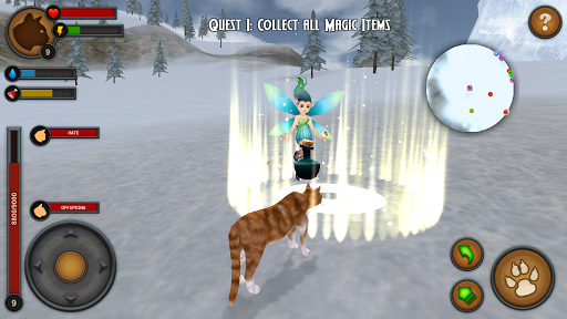 The story begins with a young cat. Play with some family members, find some food, drink some water, mark some territory, and avoid the enemies. This is the wild land of Dragons, Ice Elementals, magic and adventure. Your Cat will build her skill by completing various quests. Along the way, you will develop your hunting skills. You will need to drink water quite frequently. Be sure to hunt and eat when your hunger level gets low.