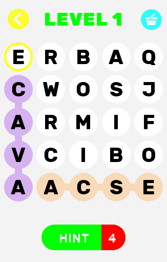 Seleziona le lettere con il dito, per superare un livello trova tutte le parole elencate. Migliori il vocabolario, l'ortografia, ed eserciti il cervello mentre giochi.