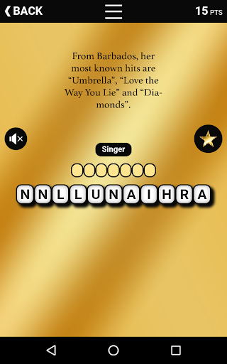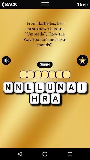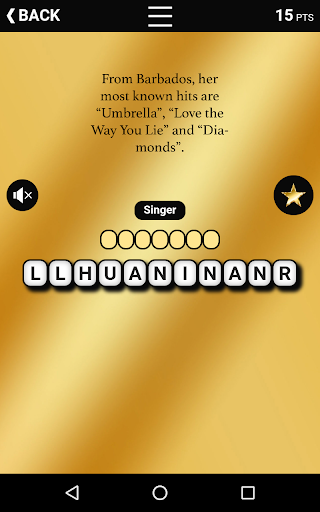 The Celebrity Guessing Game is made up of 15 levels and 150 games. Each game features text describing a famous person. Your goal is to guess the celebrities' name and spell it out using the scrambled letters.
