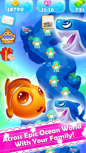 Switch and match fishes of the same color continuously to adventure in the amazing ocean world.