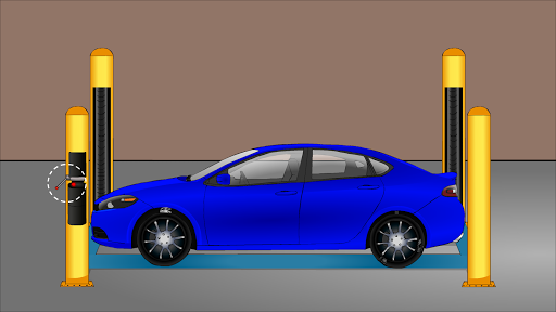 Start by lifting the car with the hydraulic car lifter. Then inspect the car and check closely for any defects in the car and touch the area to mark it. Finally in the last section, grab and drag the corresponding wrench to the area you marked before.