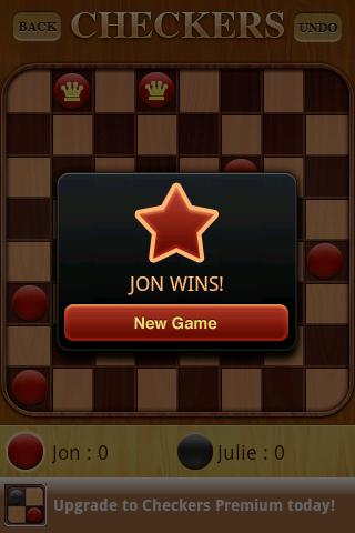 Intuitive touch controls make it easy to play checkers on your phone, just tap a piece and then tap where you want it to go. If you accidentally hit the wrong spot, an undo button lets you take back your move and try again.