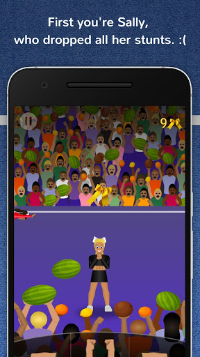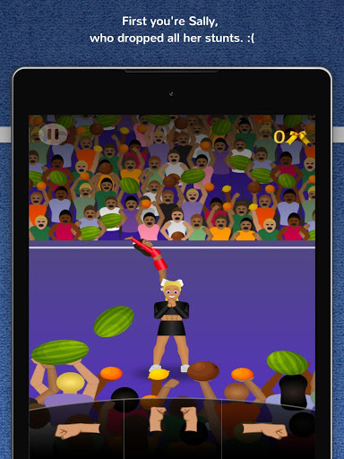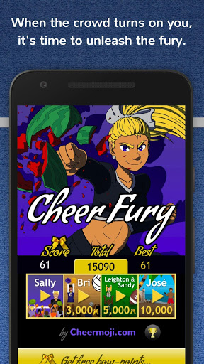 Save the cheerleader! In Cheer Fury's first level, you're Sally, who dropped all her stunts so the crowd's throwing fruit at you! You'll have to unleash your fists of fury with sharp motions and high tucks to defend yourself.