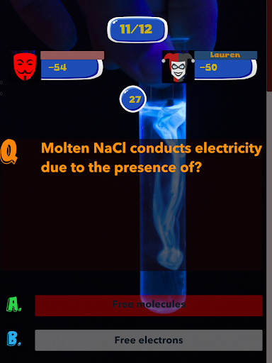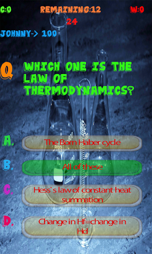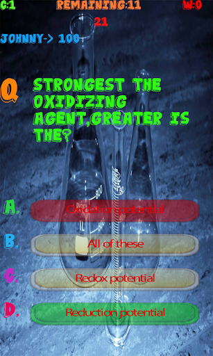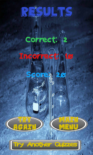 This app helps user to sharpening their knowledge and senses, help them to prepare for exams or tests which are based on all branches of Chemistry and helps them to increase their knowledge. This app targets people of all ages, even children could enjoy tests created by this app and could enhance their Chemistry Knowledge. This app could be used for the preparation of School, Collage and Universities quizzes and also for entry tests. This app contains cool features like coloring the buttons green if the answer is correct otherwise coloring the button red because the answer is wrong. It provides multi-player functionality which enables you to play against the players around the world. It contains good graphics and less Ads. This app is extremely efficient, it is developed in such a way so that it could run smoothly in any device.