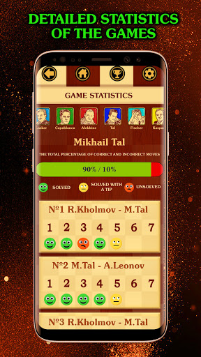 In each game, there will be tasks where you need to find a move or a whole variation of the great maestro, "play like a world champion."
