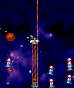 Just when you thought it was safe to eat chicken again, the chickens have returned with an organized invasion to take over the entire solar system. Journey to each planet and fight your way through to save the world again. One or two players.