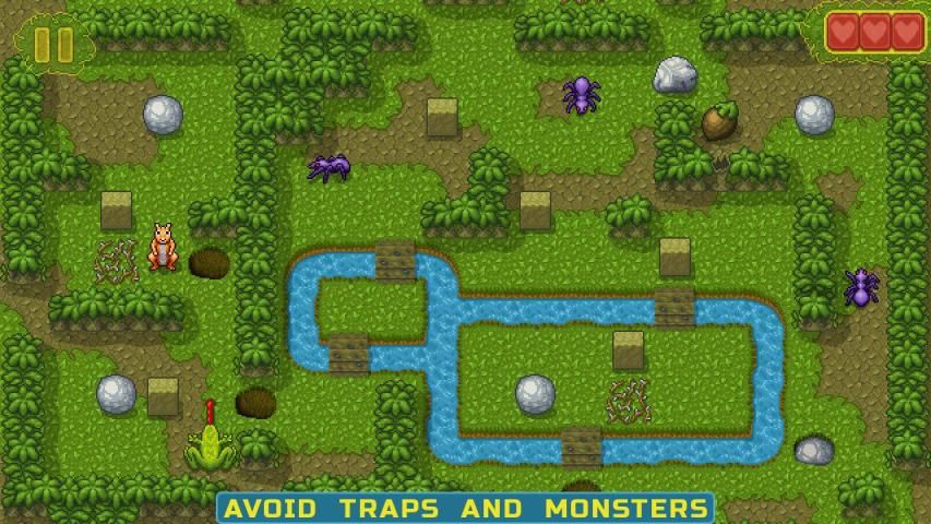 • Move the blocks, roll the stone balls, kill monsters, avoid traps.