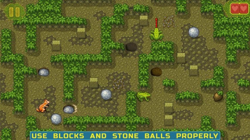for closing pits, destroying traps, killing monsters, earning in-game currency, bypassing obstacles, and finally getting the nut.