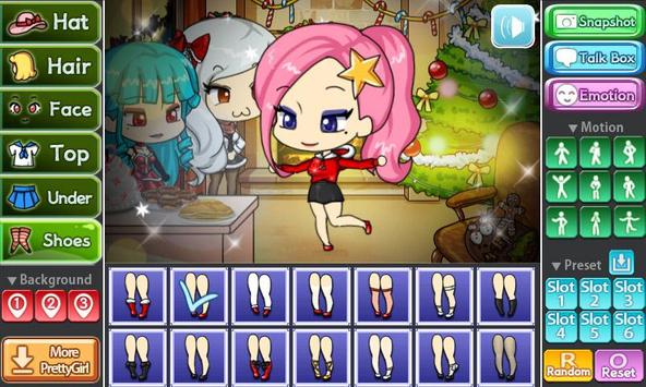 You can change the background, 9 poses and motions, you can also store your Pretty Girl in 6 slots.