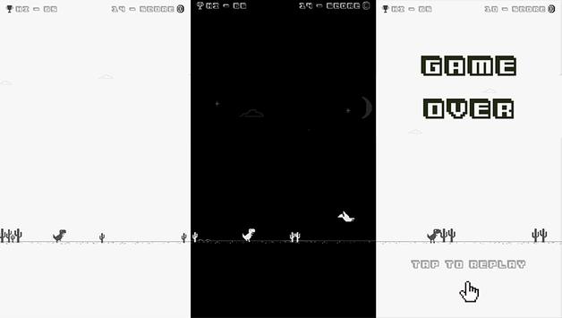hidden T-Rex game Remaked, T-Rex game from Chrome offline mode. Touch the screen to start the game then click on screen again to jump and duck to avoid pterodactiles and cactus saving your T-Rex life. Control your dino TRex in this infinite runner game.