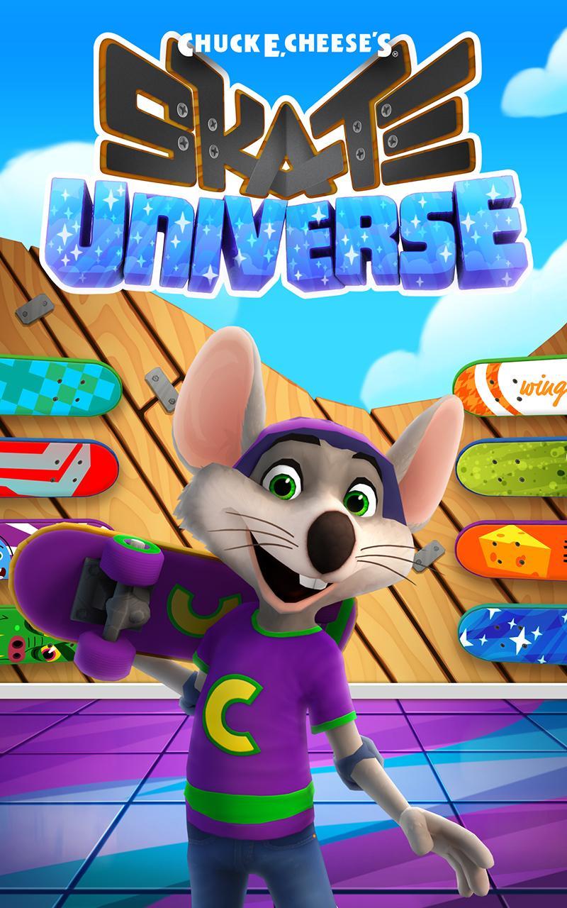 Grab a skateboard and help Chuck E. Cheese shred some sidewalk in Chuck E.’s Skate Universe.