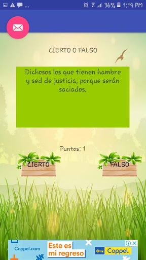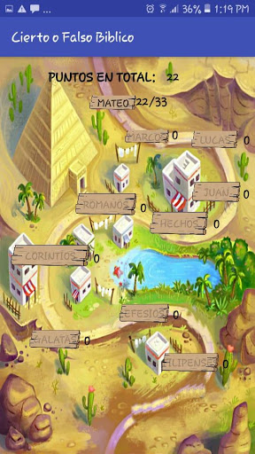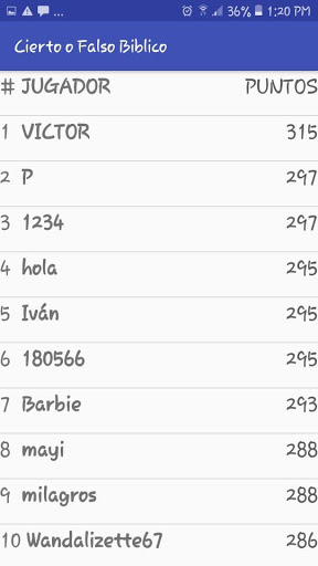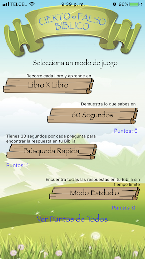 Consta de una serie de preguntas al azar la cual tendrás que responder haciendo un recorrido por cada uno de los libros de la biblia. Las respuestas son Cierto o Falso, de esta manera te será mas sencillo responder. Procura hacer la mayor puntuación posible para posicionarte en el # 1.