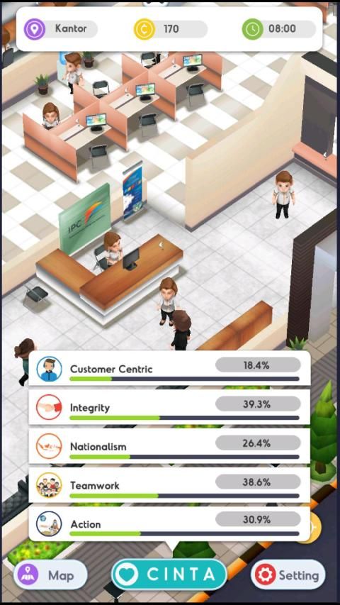 Aplikasi berbasis mobile CINTA IPC Game yang diberi hadir di tengah-tengah Insan IPC untuk memberikan cara baru yang “digital” dan “kekinian” dalam mengenali nilai-nilai budaya perusahaan dan panduan perilakunya. Melalui game ini, Insan IPC akan mendapat experience baru dan kesempatan “berpetualang” untuk menemukan insight panduan budaya perusahaan serta makna C.I.N.T.A dalam keseharian.