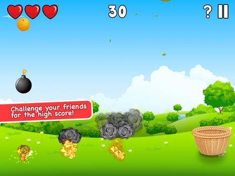 The objective is simple, you must catch all the fruits that are falling from sky with your basket. Each fruit has its own value, so you must think fast and go for the best one to catch, but be careful of bombs, they can put and end in your adventure!
