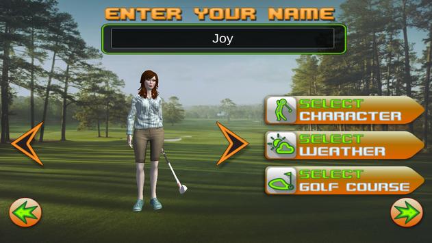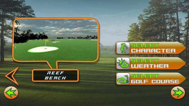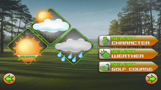 Enter your name, select your avatar, select your desired weather (sunny, cloudy or rainy) and desired golf course (Reef Beach Golf Course or Green Meadows Golf Course) and Start Playing.