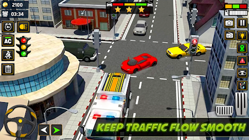 Crazy traffic simulator along with resilient rush hour is coming. This utmost madness game schlep highway traffic racers to escalate purview of flawless signal controller. Avail the chance to become a perfect traffic policeman in big city. In peep of day, big city roads are rushed by csr classics & auto vehicles. It's your time to smoothen traffic-flow by controlling signals and ultimately be a traffic conductor. The more sports cars and school buses you get through, the higher your score. Be careful as emergency vehicle could pop up from anywhere. Hang on to let rescue vehicles go without any single stop. Seems interesting? Yes, it is. Hooked up as a mad traffic controller of NY city and precisely control cars at signal stops. Be vigilant & careful as traffic rush comes from four sides and you have to stop road cars by one tap on signal bar. Remember to turn on green signal when emergency vehicles arrive in order to follow traffic law & avoid roadside accident. Direct vehicular and pedestrian traffic around busy town road to ensure road safety of emergency vehicles, derby racing autos & general public bus. Perform your traffic warden duty and don’t let rescue vehicles like ambulance, fire truck smash.