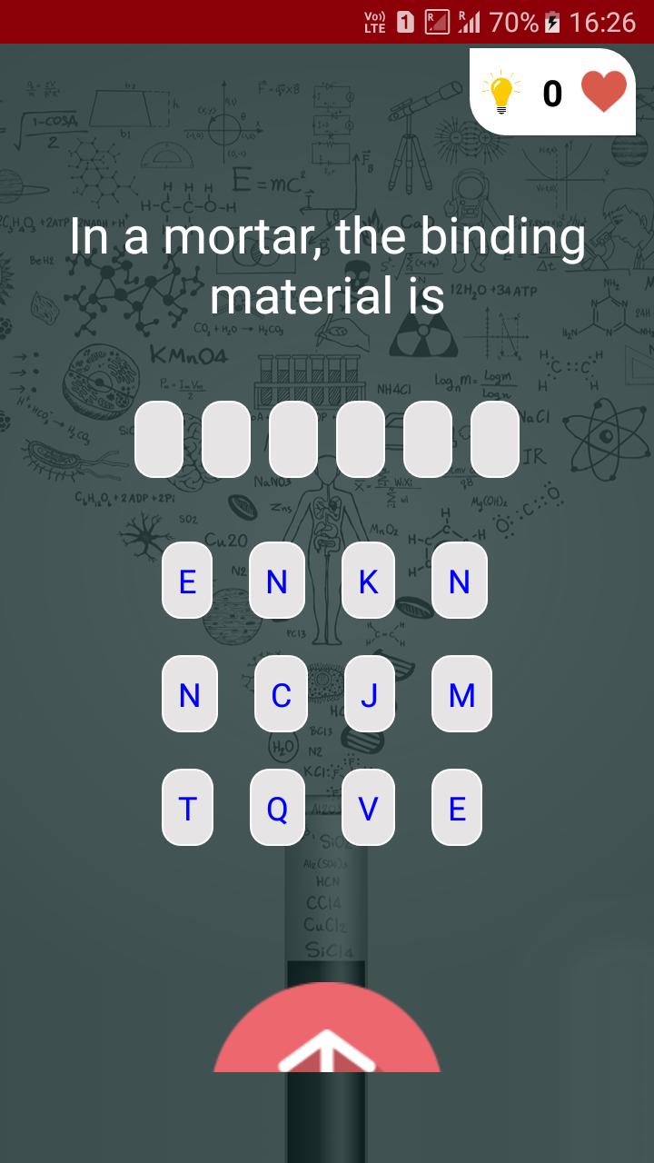 In Civil Engineering Hard Quiz there is no multiple option to choose there is shuffled characters to answer them.
