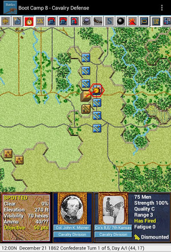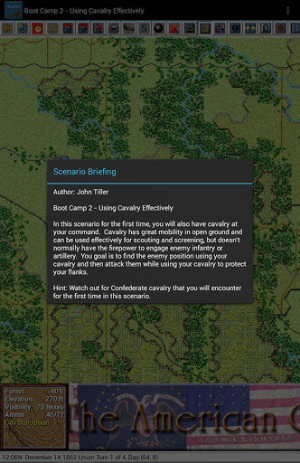 Civil War Battles is a detailed turn-based simulation of combat from the American Civil War. Unit types include infantry, cavalry, artillery, gunboats, and supply wagons as well as leaders which can significantly determine the outcome of a battle just based on their own personal leadership and command abilities. This version includes 9 "boot camp" scenarios which allows you to build your skill as a Civil War leader and culminates in 4 battle scenarios involving every aspect of Civil War combat.