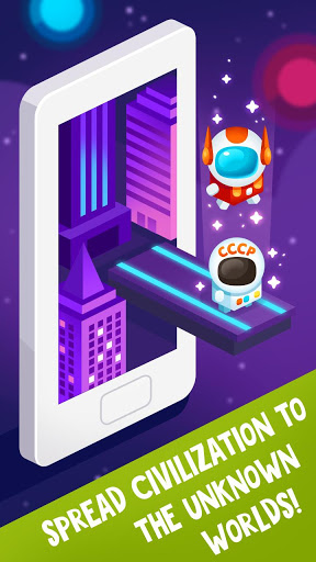 Explore and conquer the brave new world for your new nation! Merge people, enjoy the level evolution from the awkward troglodyte to the bold spaceman or mighty cyborg!