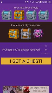 *Disclaimer* This app does NOT play the game for you, and is not used to cheat or hack. To use this app, you need to know where you are at in the chest cycle. The best way to know, if you've already been playing, is to try and figure out where your last notable drop was, such as a giant or magical chest.