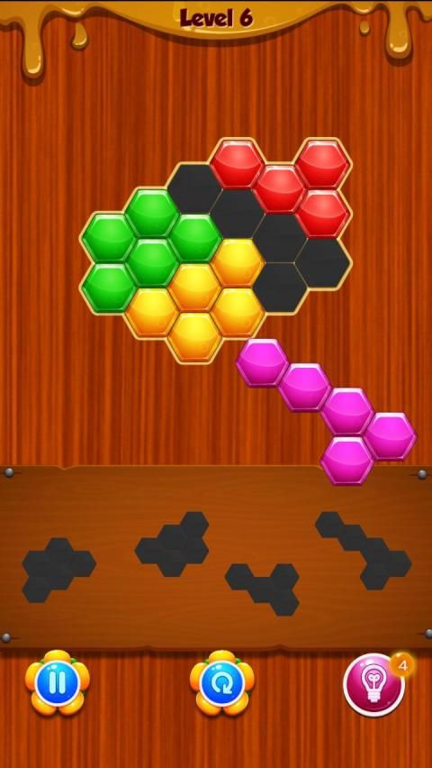 • Place the blocks pieces into board. Once you fill in a vertical or horizontal line, it will disappear, freeing up space for new pieces.