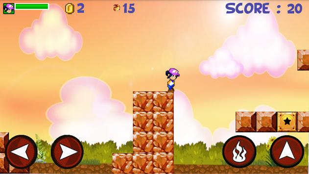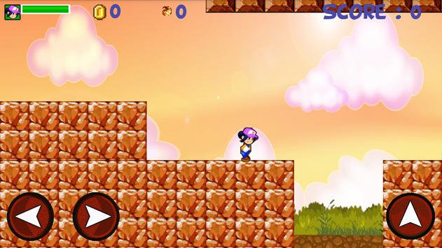 Run, jump and explore the arcades. Travel across dangerous forest, volcano, desert, swamps,etc. Collect coins, star, magic mushrooms to help you defeat the Monster!