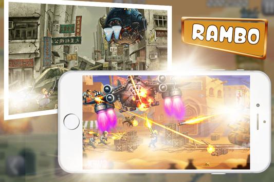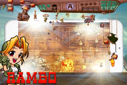 Fully armed to help ,the ramboluns must move towards the battlefield, across abandon city, jungles, forest and enemy aircraft. Find the old men abducted on the way and free them to receive attractive gifts.