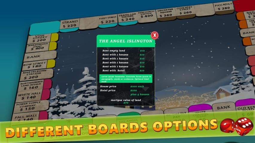 Trade lands, build houses, win auctions, enjoy your business by sell and buy Properties like builds houses, acquire Classic Business Board, make deals, win auctions and jail. If you like family dice board games - you will like Classic Business Board