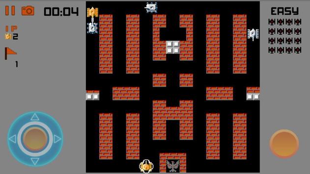 You have to control a tank, and then destroy enemy tanks in each level, which enter the playfield from the top of the screen. The enemy tanks will try to destroy the player's base (represented on the map as a bird, eagle or Phoenix), as well as the human tank itself. As soon as the player destroys all 20 enemy Tanks, A level will be completed, but the game ends if the player's base is destroyed or the player loses all available lives.