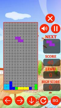The objective of the game is to move the blocks are falling slowly down tiles in size rectangular rows x 12 columns 24 (on the screen). Where there is not bricks and move to that location. Players put the blocks so that the blocks fill one horizontal line to score and that row will disappear.