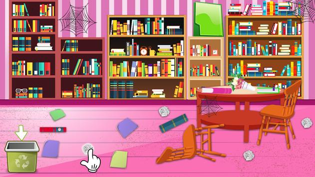 Get ready to clean up the library in classroom cleaning at high school or cleaning games. Librarian should not complaint so arrange them properly. Cleaning and arranging everything makes you responsible and caring.