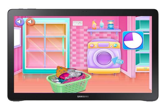 Rinse the toilet thoroughly and turn off the tap. Salt the pool and fill it with fresh water. Use the washing machine to wash the clothes and hang them to dry. Prove yourself a pro cleaner and clean the entire palate. Make the princess's house beautiful so that she can enjoy living with her mother and father. Organize everything in the living room because our little princess wants to have a party with her friends. You do not have to wait until spring to give your home a good cleaning! In House Cleaning Day, clean your house and get rid of things you do not need. Clutter has to go so that you can give your home a nice renovation. First, clean all the rooms in your house from the kitchen to the bedroom. Wipe the dust, empty the floors, and throw away the junk! Do not leave anything dirty and fix anything that is broken.
