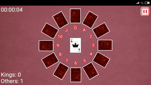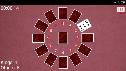 Clock Solitaire is a solitaire card game where cards are placed in a clock-like layout. The aim is to uncover all cards before four kings. If four kings are uncovered before all other cards, then the game is lost.