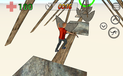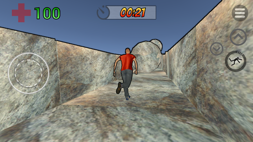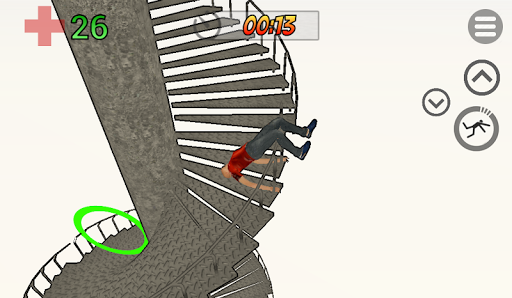 There are two joysticks on both side of the screen in the game. The left one controls your movement, while the right joystick controls your camera. On the right side there are another three buttons. The up arrow makes you jump, the down arrow makes you crouch and the stumble icon makes you fall or get up.