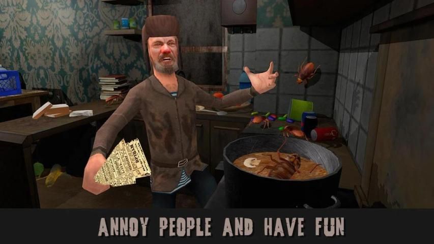 Don’t forget to mind your cockroach’s health, energy, water and food indicators to survive - if one of it drops – there is no chance to stay alive! Collect enough resources, earn points by annoying people and upgrade your insect’s skills to be more effective in this epic struggle against humanity! Customize your roach to make it the perfect fighter – or just buy new skins!