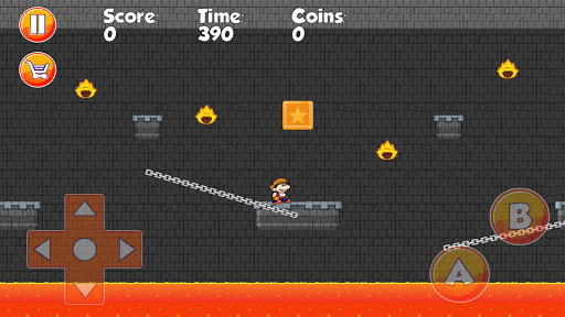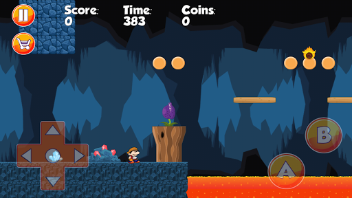 You begin game in firt world: jungle and then continue your adventure in other worlds castle, desert, cave and more.