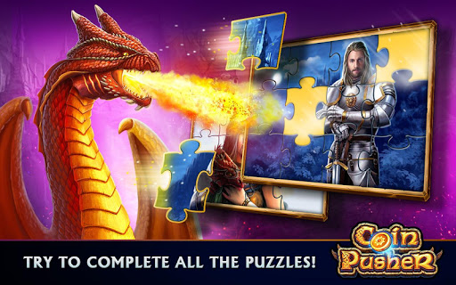 If you get stuck, use the Shake option; every collected coin fills your Shake meter. You can activate it when it reaches one of the three levels: Low, Medium or High. Activating this feature shakes the table making the coins on the edge fall off the table. Collect 4 or more coins at once to trigger a Coin Attack; this will create and spread special goodies, prizes and puzzle pieces. Once you collect all the gold puzzle pieces, 12 to be exact, you’ll open the secret door of the room which contains a huge amount of rewards. Puzzle mini games unlock at level 5, and from there each level of our coin pusher has a puzzle mini-game to solve. Keep gaining XP to collect all the surprise rewards waiting for you!