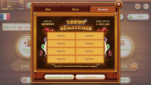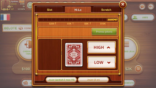 Belote is the most popular card game in France ! Download the game now and join to the biggest Belote Community. Make new friendships or enjoy with your friends playing the most lovable game by all. Play Belote Classic or Coinche free and show your ability to win in this free multiplayer game. Enjoy a unique reconnection system to never again lose your Chips and return to a current game.