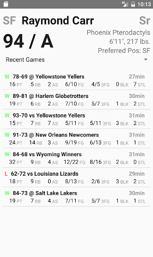 Take control of a college basketball team and manage lineups and offensive and defensive strategies. View detailed stats of every player and team as you progress along the season. Send your team to conference tournaments and take part in the ever exciting March Madness!