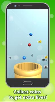 The balls fall down into the pipe with an increasing speed, the player must be quick and pop the ones of the wrong color and let pass the bubbles of the same color of the pipe.