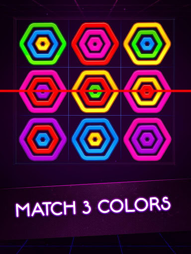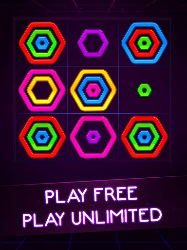 - Arrange and stack the color Hexagon rings on the vertically, horizontally and diagonal lines.