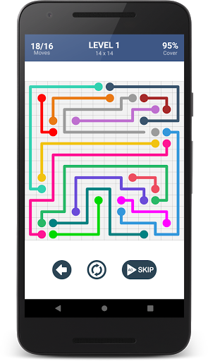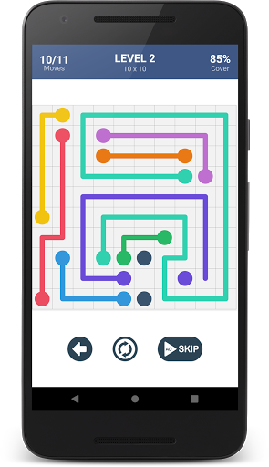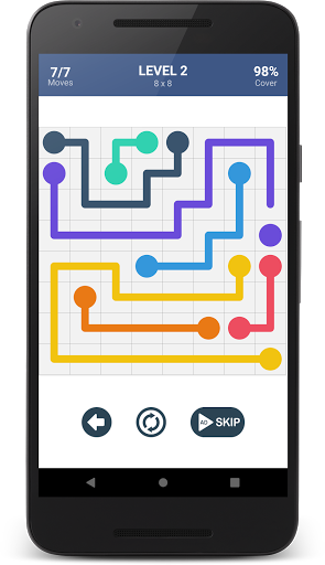 Connect matching colors with pipe or color line. Pair all colors, and cover the entire board to solve each puzzle in connect the dots. But watch out, lines will break if they cross or overlap!