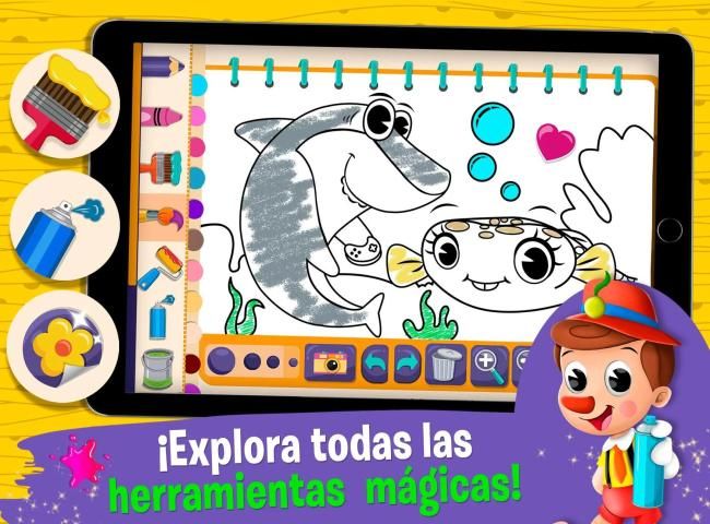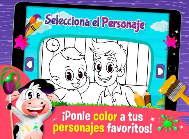Learn to color and draw with the favorite characters of your children's songs. It is an entertaining game that allows you to color, simulating the experience of drawing and painting on a paper, using different pencils, brushes, textures and different tools that will decorate the illustrations, giving them the personalized touch that each child wishes.