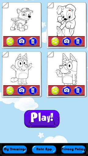 Coloring Kids Pups Patrol cartoon on Android. Start drawing colouring pages , Enjoy coloring the pictures of pups dog : chase and marshall, rocky, zuma, rubble, skye cartoon . Colouring for toddlers help your children to relax and feel better .