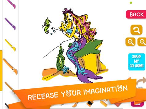 Super cute mermaid doll coloring pages and many drawing tools that will help your kids level up their imagination and skills.