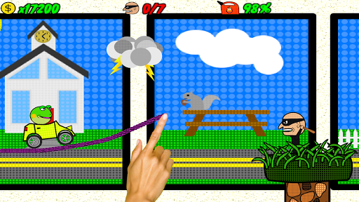 You draw the path as your car careens through colorful comic books!