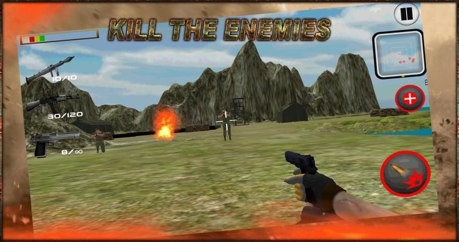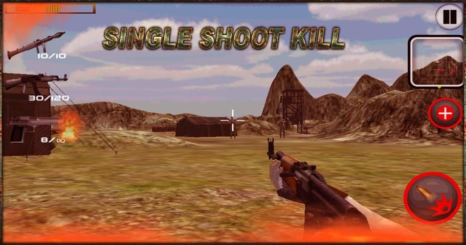 As a alone commando serve own complete life for army.And save own country from dangers enemies.In this mission you have provided a gun, but you can find various kinds of weapons from the enemy’s base camp like AK-47, a MP5 gun and pump action etc.