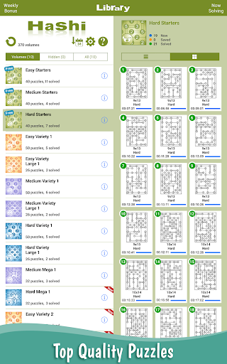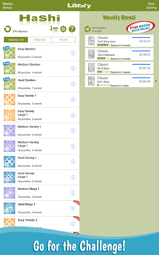 For more fun, Conceptis Hashi includes a Weekly Bonus section providing an extra free puzzle each week.