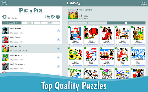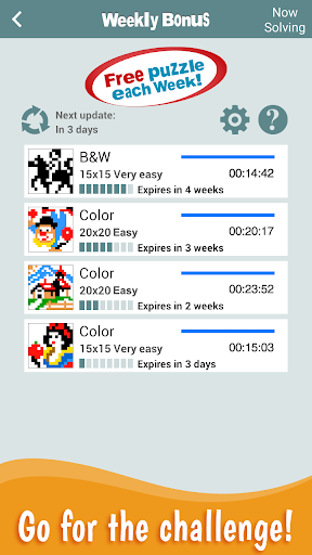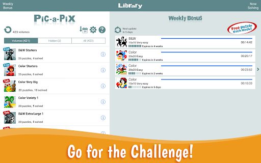 For more fun, Pic-a-Pix includes a Weekly Bonus section providing an extra free puzzle each week.